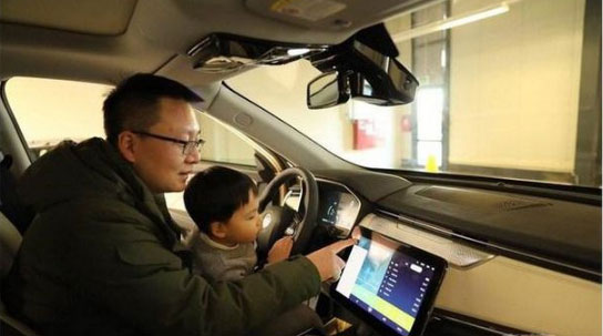 3. 新车内饰设计非常简洁,可以旋转的大尺寸中控大屏是最大亮点,并采用了横置布局,这也是同级车型中非常大胆的设计。